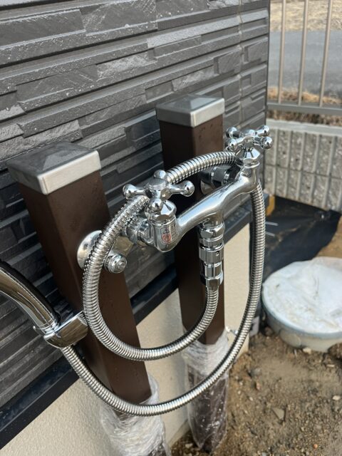 実用性はもちろん、シャワーヘッドやハンドルのデザインも印象的で、外構のアクセントになる一台です。