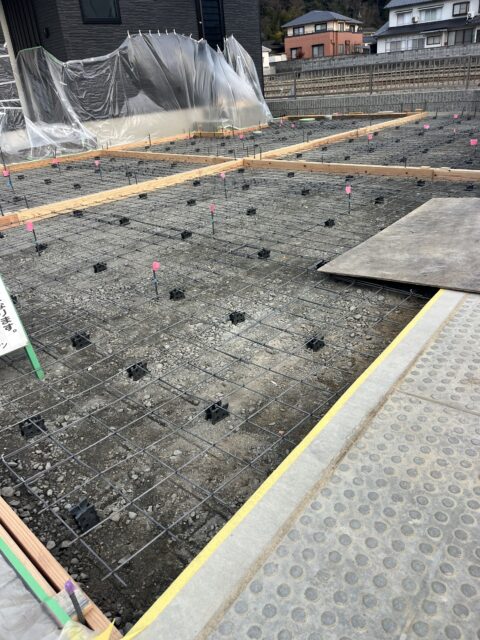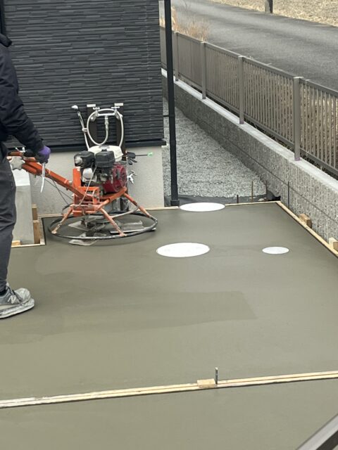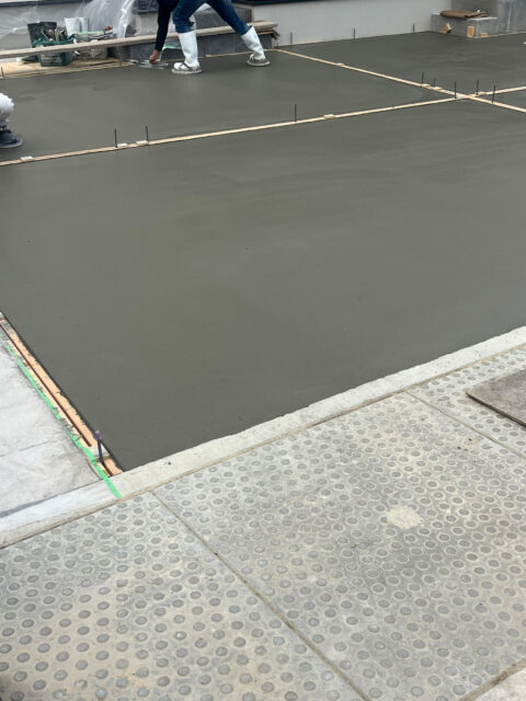 型枠を設置し、メッシュ筋を組んだあと、生コンを丁寧に打設していきます。