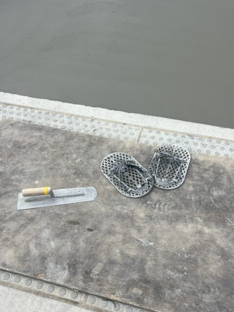 こちらは生コン仕上げで欠かせないコテと、作業時に使うアルミスリッパになります😄